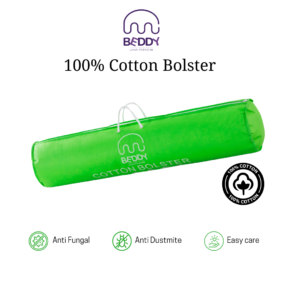 Beddy Natural Cotton bolster is made of 100% cotton and feels cool against your skin; hypoallergenic and breathable for warmer climates.